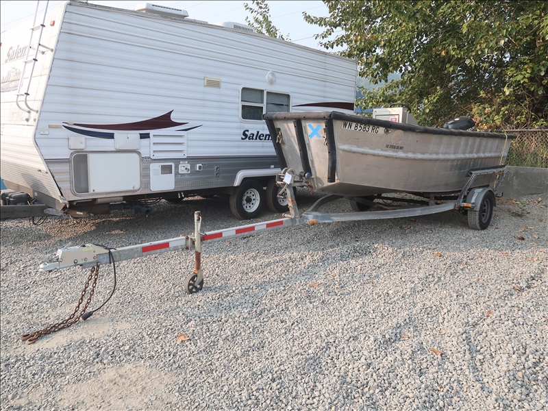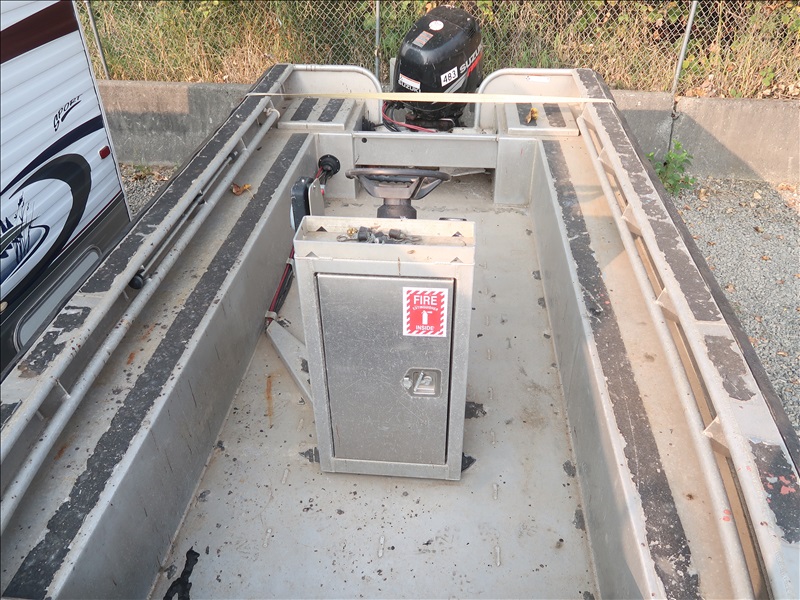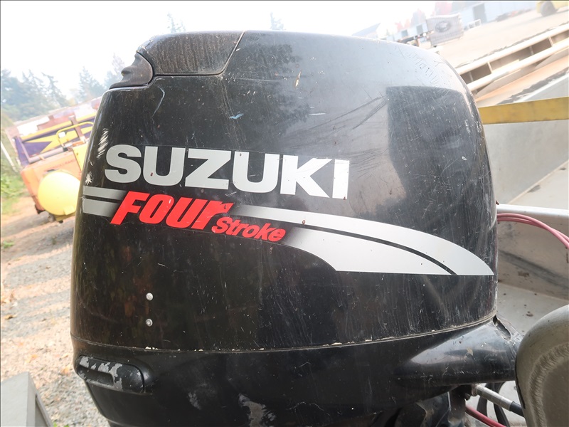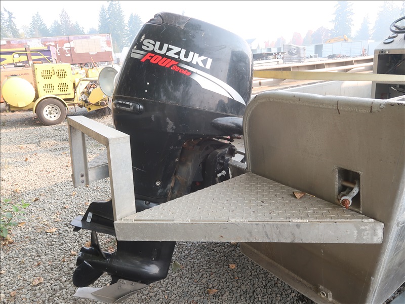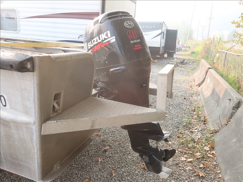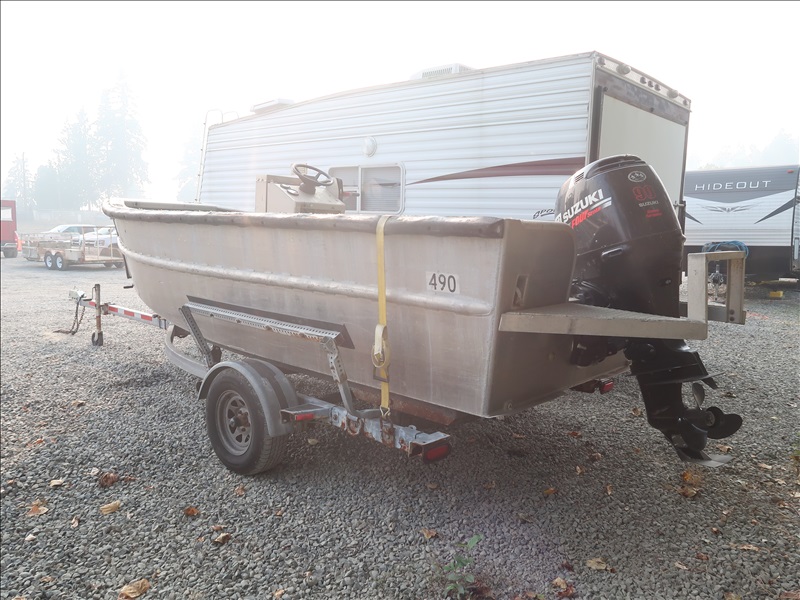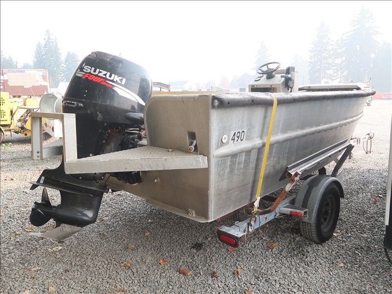16' ALUMINUM BOAT, SUZUKI DF90, 90 HP 4-STROKE ENGINE, HOUR METER READS: 165 W/S/A GALVANIZED BOAT TRAILER