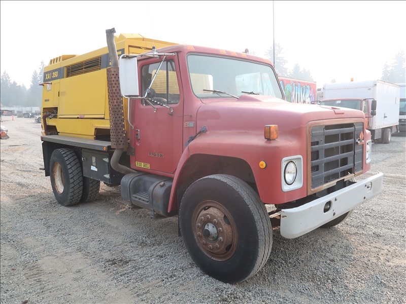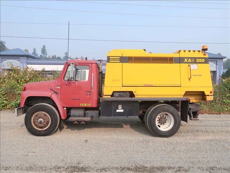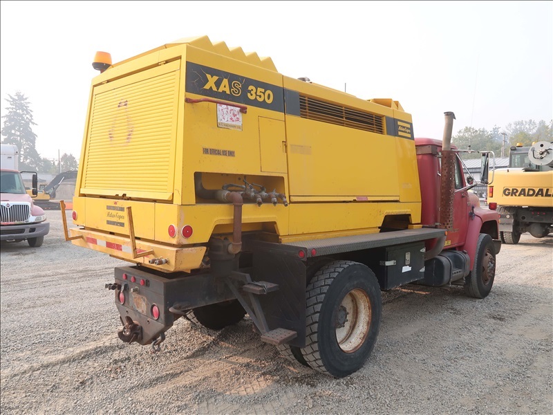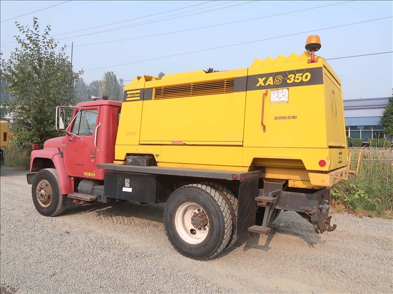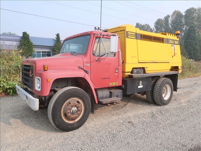 AIR COMPRESSOR TRUCK, DT466 AUTO, ATLAS COPCO XAS 350 ROTARY SCREW COMPRESSOR, DETROIT 6 CYL DIESEL, 350CFM
