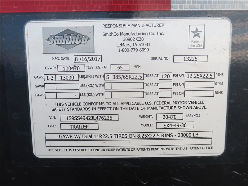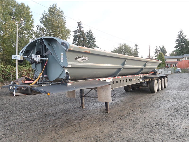 QUAD/A, 49' 100,470 LB GVWR, 36' STEEL BOX SIDE DUMP TRAILER, FRONT & REAR DROP AXLES, RIDEWELL AIR SUSPENSION, TARP SYSTEM, REAR PUSHER, 385/65R22.5