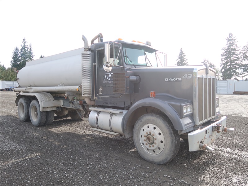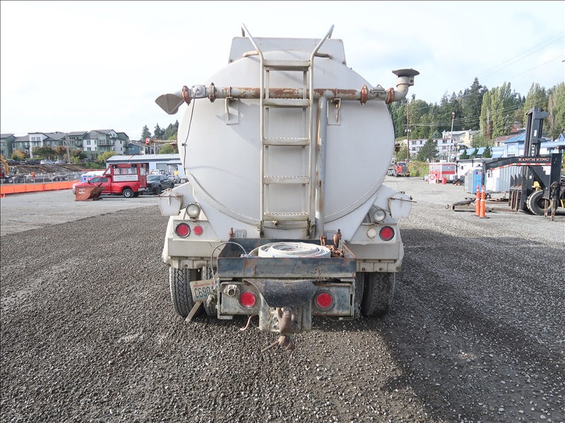 T/A, 4,000 GAL WATER TRUCK, CUMMINS 6 CYL, 13 SPD, ALUMINUM TANK, FRONT/REAR SPRAY, PTO SELF LOADING PUMP (AIR BLEEDS OFF WHEN BRAKES APPLIED)