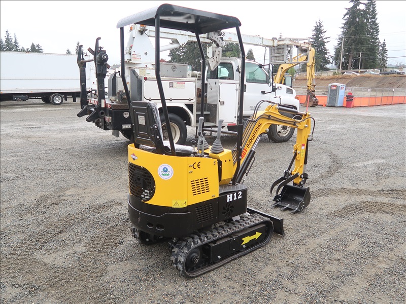 MINI EXCAVATOR, 13.5 HP BRIGGS & STRATTON XR, FIXED THUMB, AUX HYD, BLADE, RUBBER TRACKS, CANOPY