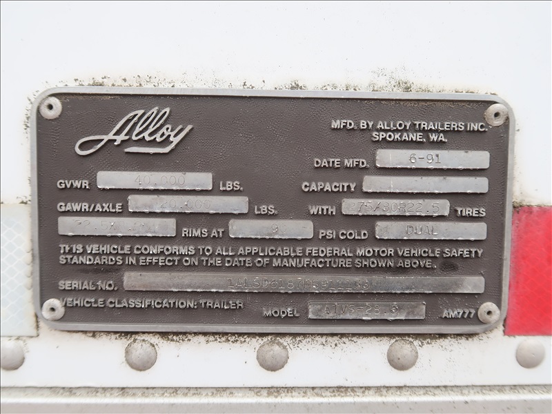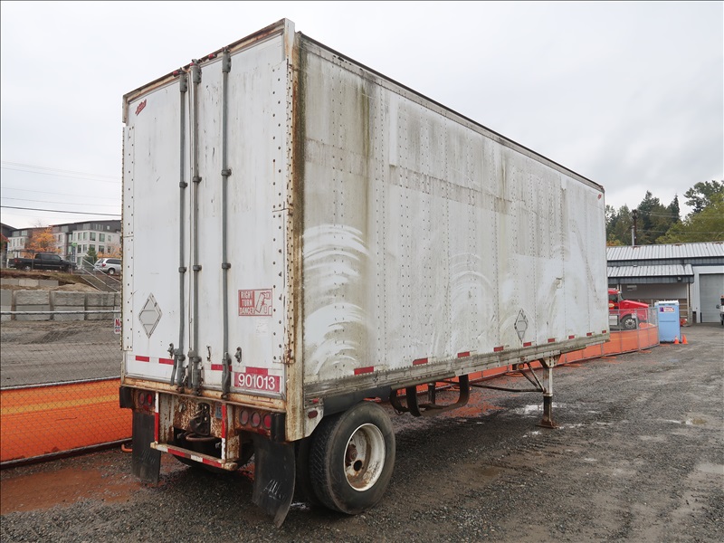 S/A, 28' 40,000 LB GVWR VAN TRAILER, SPRING SUSPENSION, BARN DOORS, A/B, W/CONTENTS, 295/75R22.5