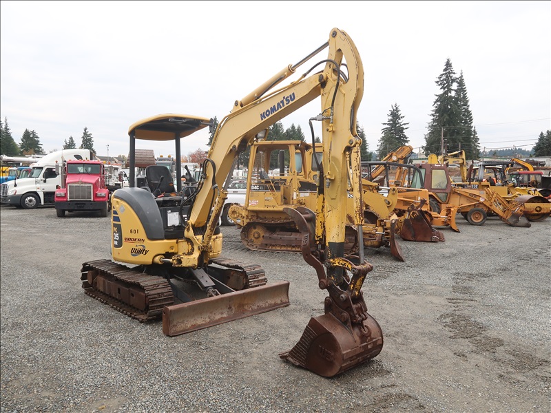 MINI EXCAVATOR, 29.1 HP 3D88E-5, SWING BOOM, AUX HYD, HYD THUMB, PIN GRABBER, 24" BUCKET, CANOPY (NO BATTERY, TRACKS NOT HOLDING TENSION)