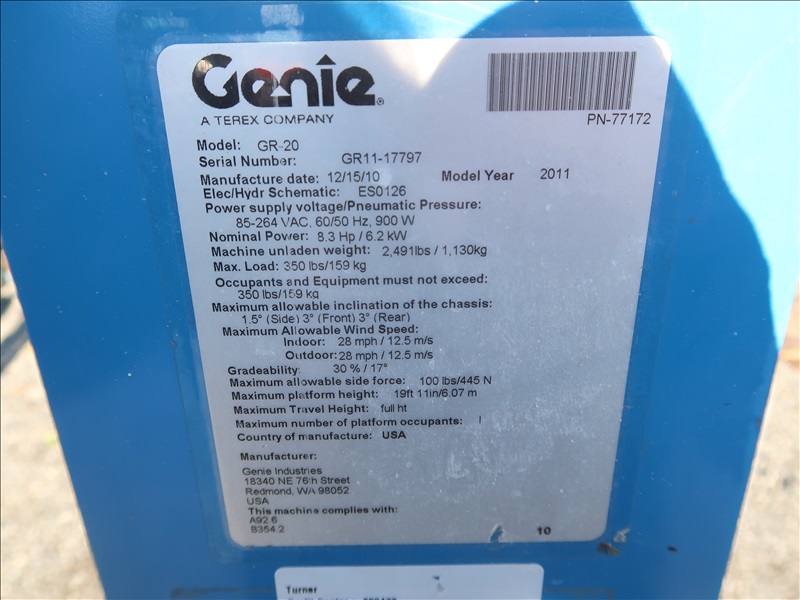 20', 350 LB, 24V, HRT, PLATFORM LIFT (NO KEY)
