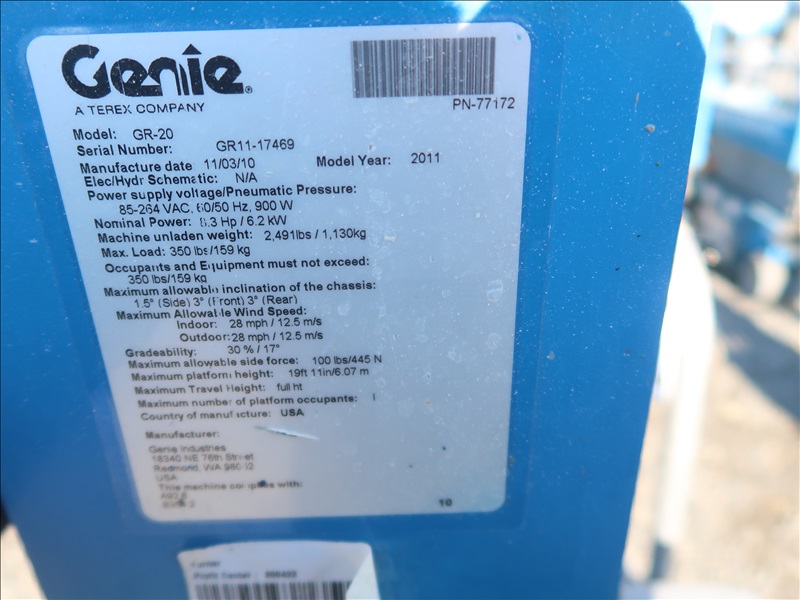 2011 GENIE GR-20 VERTICAL MAST LIFT