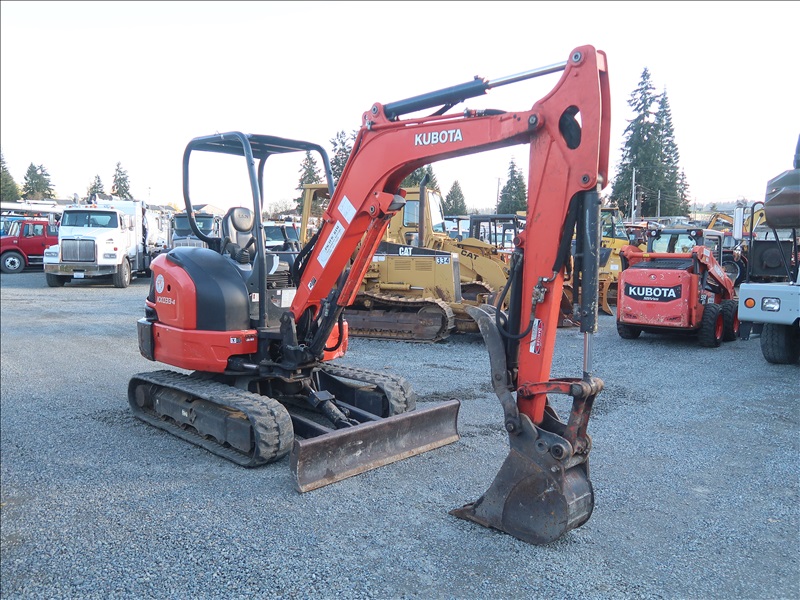 MINI EXCAVATOR, 24.8 HP D1703M-DI-E4, SWING BOOM, HYD THUMB, QC 12U" BUCKET, BLADE, RUBBER TRACKS, CANOPY