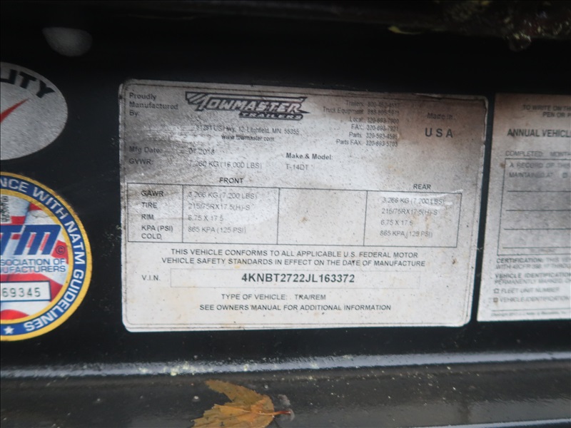 2018 TOWMASTER T/A TILT DECK EQUIPMENT TRAILER