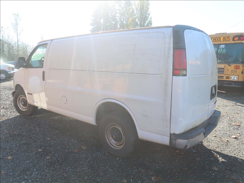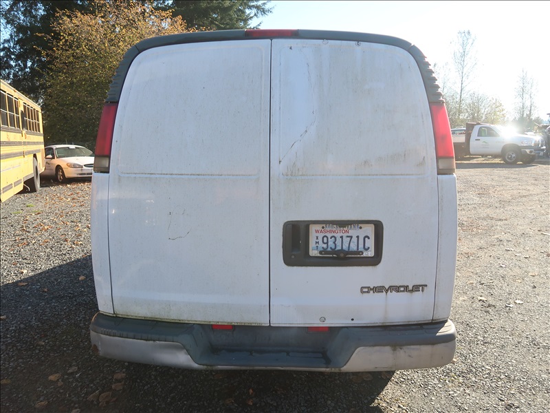 CARGO VAN, V8, AUTO, P/LOCK (NEEDS FUEL PUMP, CATALYTIC CONVERTER MISSING(TO BE SOLD IN ABSENTIA LOCATED IN LAKE STEVENS WA, FOR PREVIEW PLEASE EMAIL Vince_Santeford@lkstevens.wednet.edu TO SCHEDULE APPOINTMENT FOR PREVIEW. THE SITE WHERE THE ITEMS ARE STORED IS NOT OPEN TO THE PUBLIC WITH OUT PRIOR APPOINTMENT. )