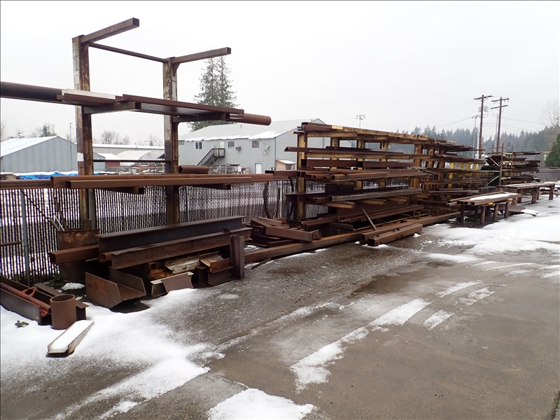 (6) SINGLE SIDED CANT RACKS W/ASSORTED STEEL INVENTORY