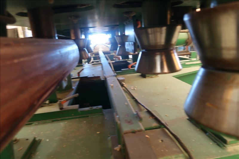 (2) CUSTOM BUILT LOG COPING MACHINES W/(2) APPROX 20 HP ARBOR DRIVE MOTORS, (10) POWERED FEED THRU ROLLS