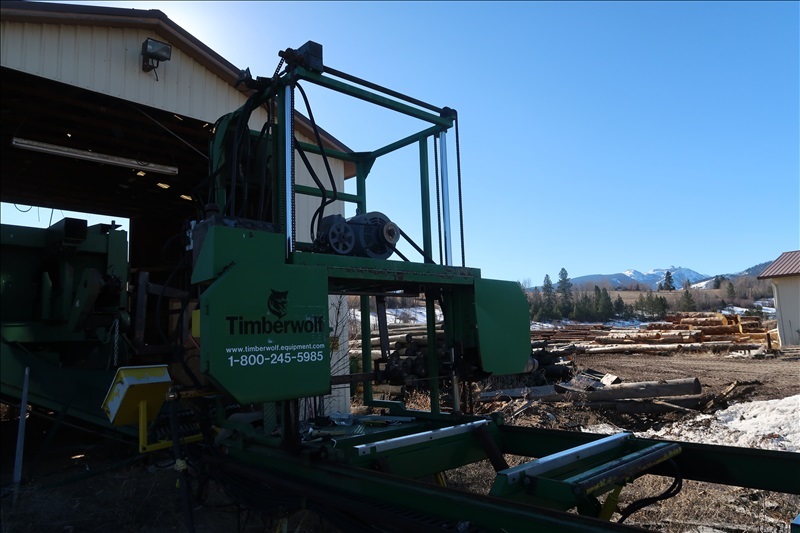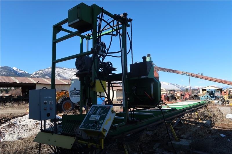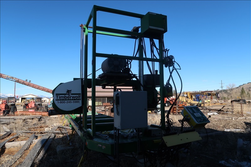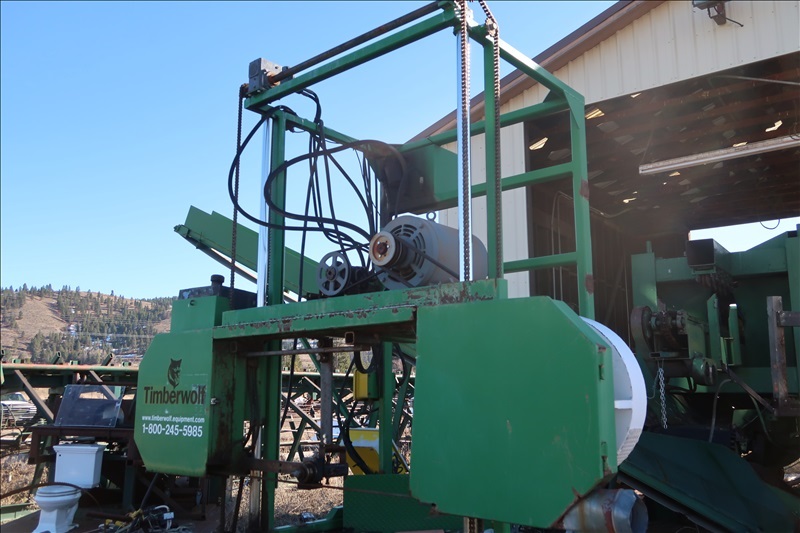APPROX 48"X20' HORIZONTAL BAND TRAVELING SAWMILL, APPROX 20 HP HYDRAULIC PUMP W/(2) CANT TURNERS & (4) CANT LIFT ARMS, ATTACHED ELECTRICS