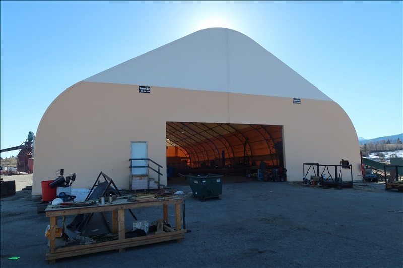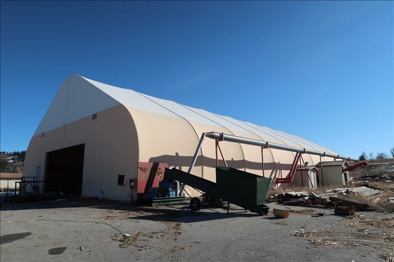 APPROX 40' CENTER HEIGHT X 80' WIDE X 180' LONG PORTABLE BUILDING, METAL FRAMED, CANVAS COVERED, APPROX 30' POWERED GARAGE DOOR, (3) MAN DOORS