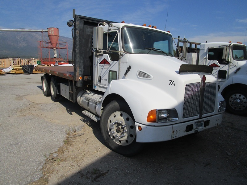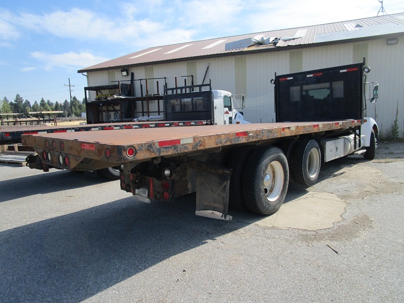 T/A TRACTOR, CAT C7 TURBO DIESEL ENGINE, EATON FULLER TRANSMISSION, 24' FLATBED W/HEADACHE RACK, ALUMINUM PROTECH BOX, 10-HOLE RIMS