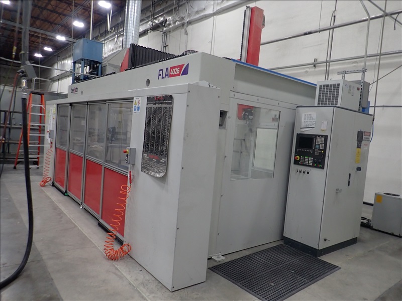 5-AXIS HIGH SPEED CNC MACHINING CENTER, 8-STATION TOOL HOLDER, AUTO DOORS, (2) 93"X72" TABLES, ES779 HEAD, SIEMENS SMUNERIK CONTROLS, COSMOTEC CHILLER, S/N: 10942