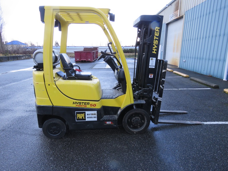 4,800 LB CAT SOLID TIRED FORKLIFT, 3-STAGE MAST, SIDE SHIFT, PROPANE (MUST STAY UNTIL 12 PM, MONDAY, JANUARY 24TH)