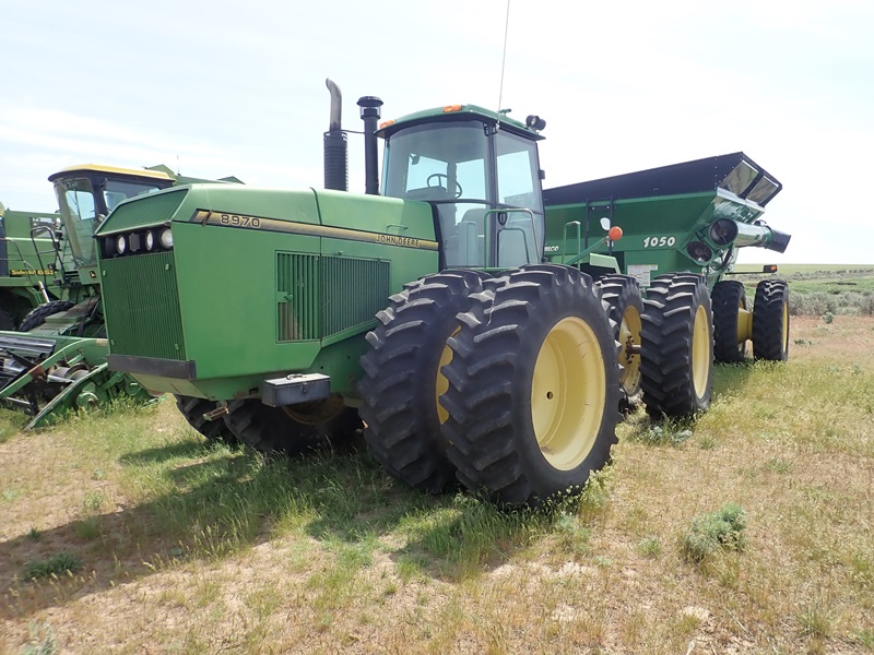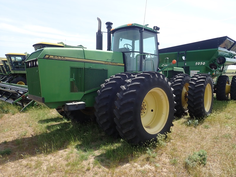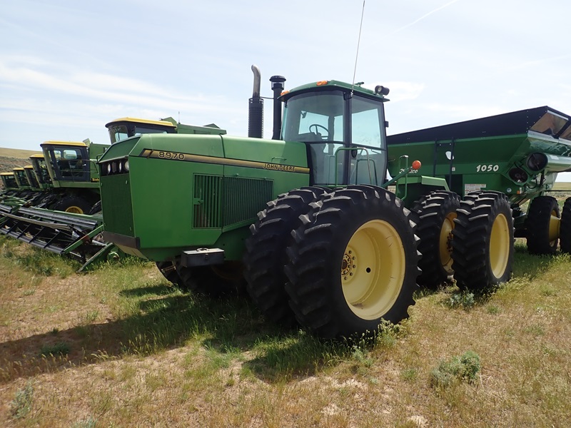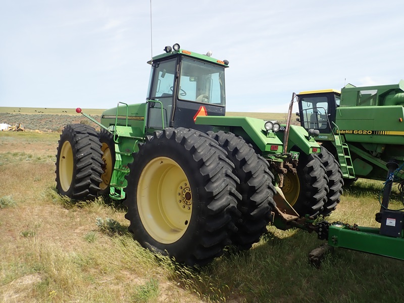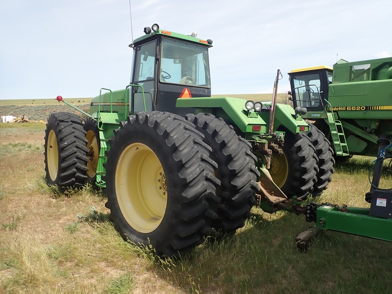 370 hp MFWD articulating tractor, (3) remotes, hitch, front/rear duals, cab, GREEN STAR ready