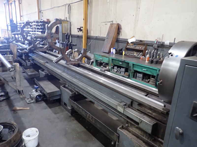 25"X27' GAP BED LATHE, 4" THRU SPINDLE, 4-JAW CHUCK, TAIL STOCK, (3) STEADY RESTS, TOOL POST, TOOLING