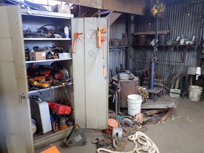 HAND TOOLS, RIGGING, TORCHES, CHAIN FALLS, BABBITT POT, STANDS & MISC.