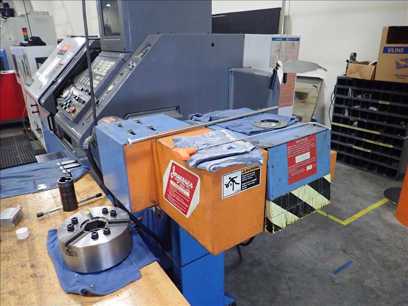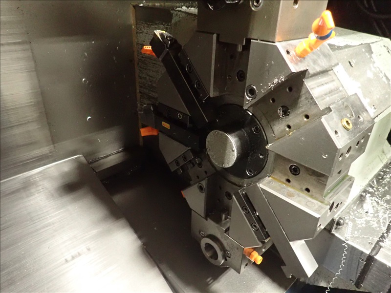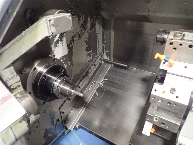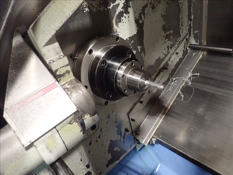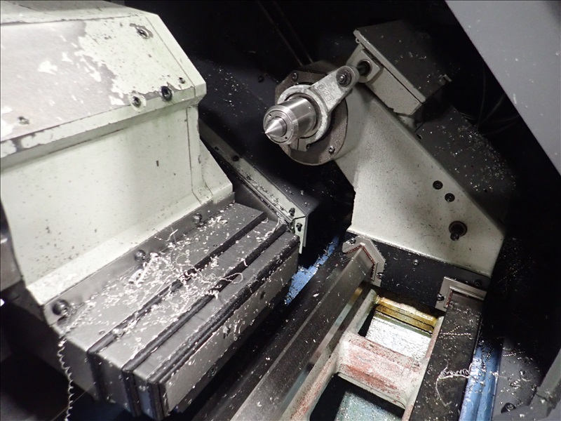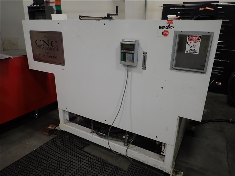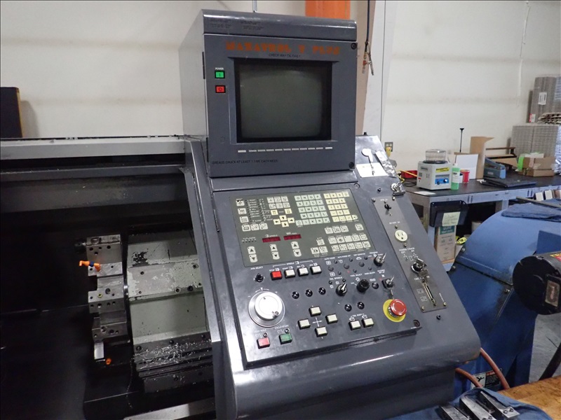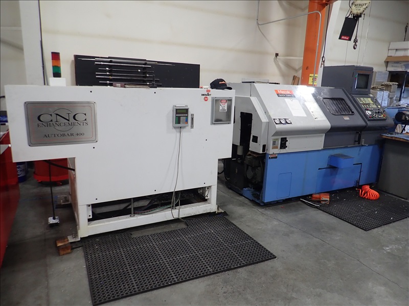 CNC TURNING CENTER, 8-STATION TURRET, TAILSTOCK, CHIP CONVEYOR, THRU SPINDLE, MAZATROL T-PLUS CONTROLS, CNC ENHANCEMENTS, AUTOBAR 400 BAR FEEDER, S/N: 137506