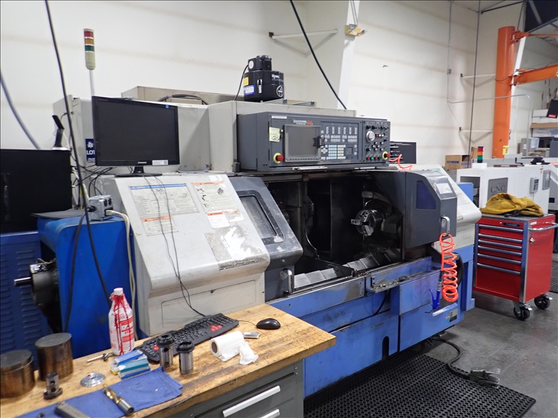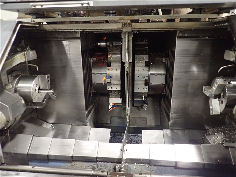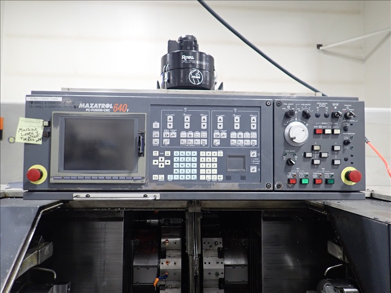 CNC TURNING CENTER, (2) 12-STATION TURRETS, (2) 3-JAW CHUCKS, THRU SPINDLES, ROYAL FILTERMIST FX300, MAZATROL 640T CONTROLS, S/N: 140414