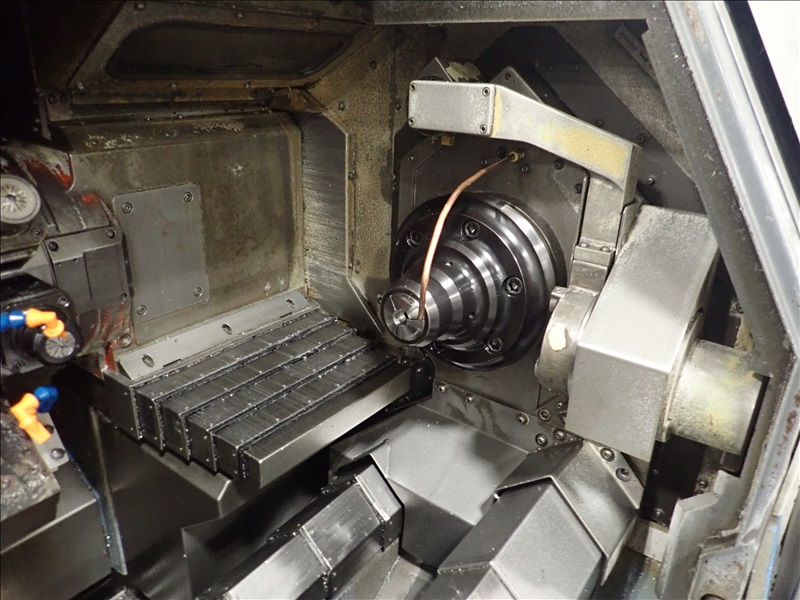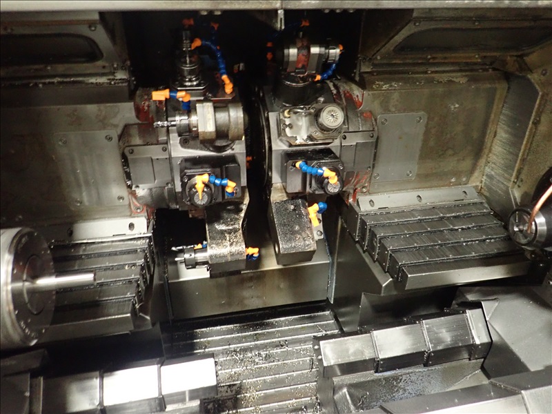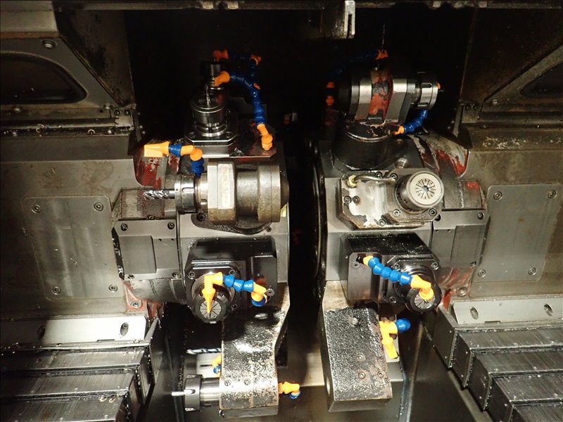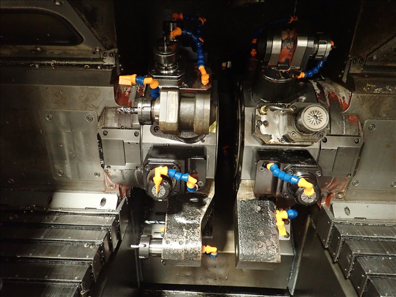 CNC TURNING CENTER, (2) 12-STATION TURRETS, LIVE TOOLING, CHIP CONVEYOR, THRU SPINDLES, ROYAL FILTERMIST FX1200, MAZATROL T-PLUS CONTROLS, S/N: 134980