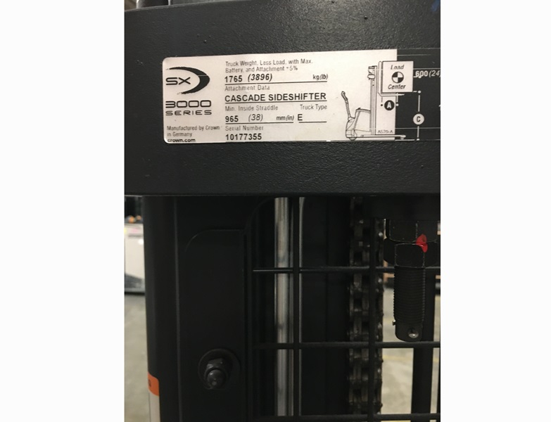 4,000 LB WALKIE STACKER, 3-STAGE MAST, SIDE SHIFT, HOUR METER READS: 68.2