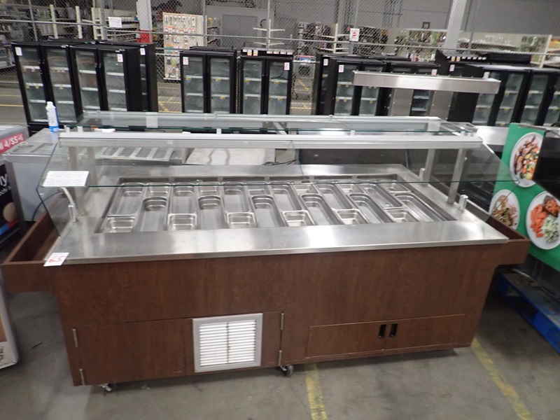 CUSTOM BUILT 106" X 51" REFRIGERATED OLIVE BAR W/SNEEZE GUARD, 120V