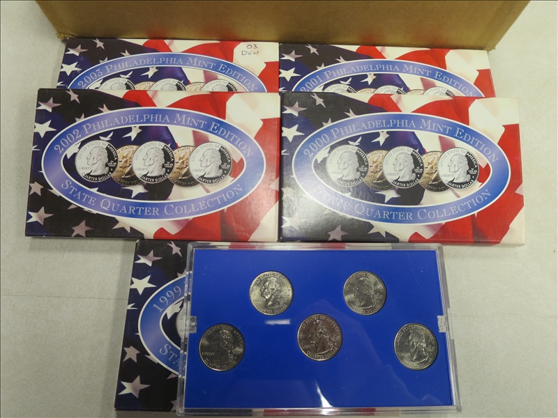 LOT, APPROX (34) ASSORTED STATEHOOD QUARTER SETS TO INCLUDE: (1) PHILADELPHIA, (10) DENVER, (6) PLATINUM & (8) GOLD