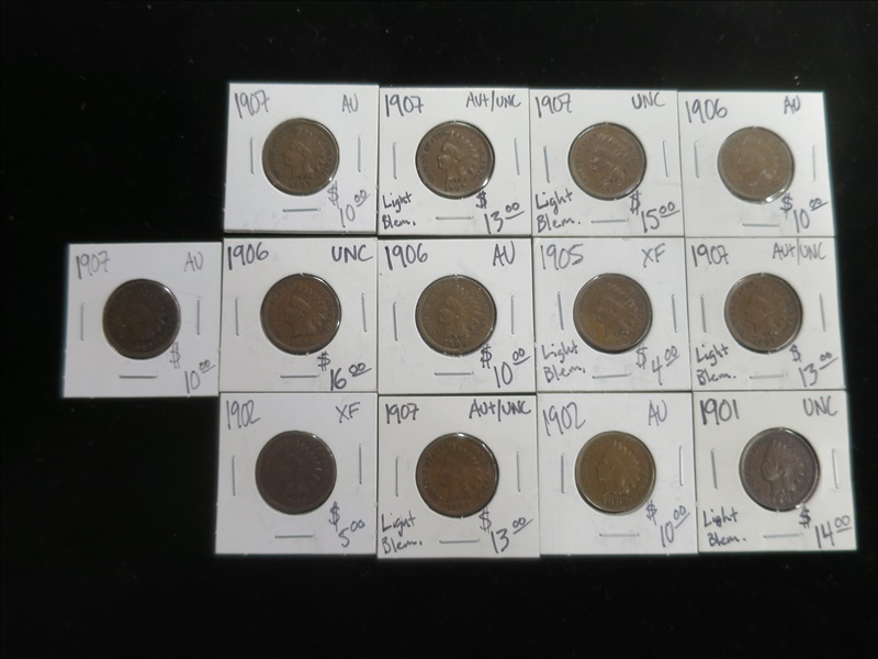 LOT, (13) ASSORTED INDIAN HEAD CENTS