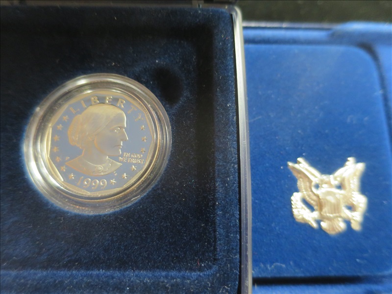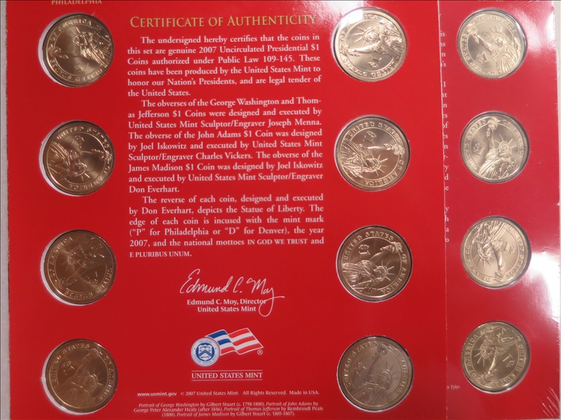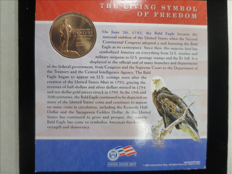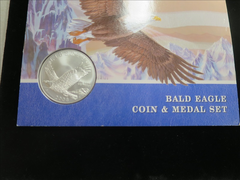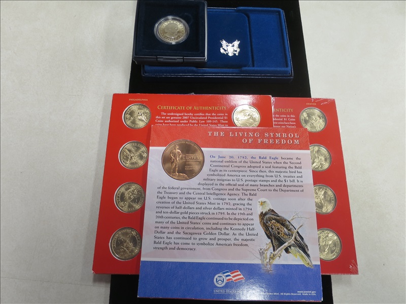 LOT, ASSORTED US $1 COINS TO INCLUDE: (1) 1987 US CONSTITUTION, (1) 2008 BALD EAGLE COIN & MEDAL SET, (1) 2007 & 2009 8-PC PRESIDENTIAL SETS & (1) 1999 SUSAN B ANTHONY