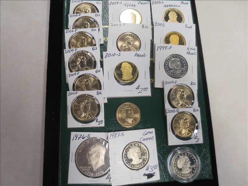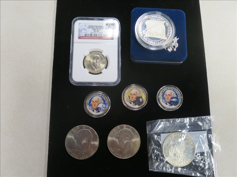 LOT, ASSORTED US $1 COINS TO INCLUDE: (1) 1987 US CONSTITUTION, (4) IKES, (2) SUSAN B, (25) PRESIDENTIAL, (2) SACAJAWEA, (1) 2007 MS66 THOMAS JEFFERSON