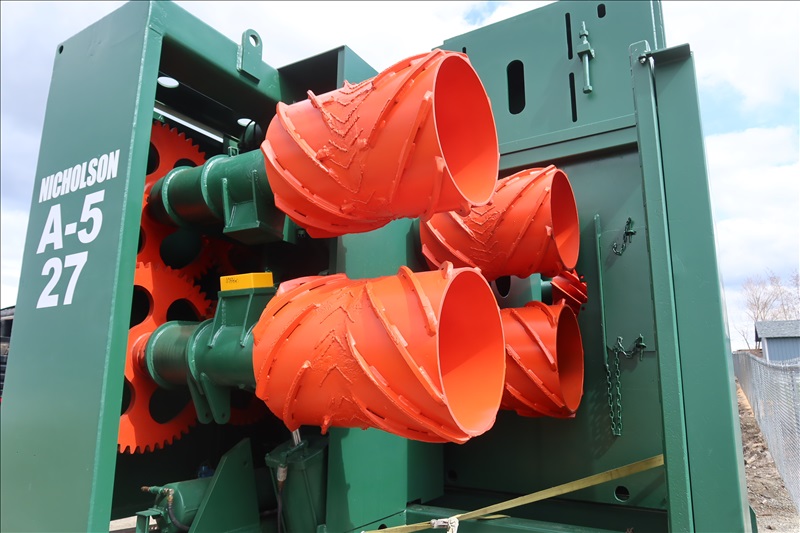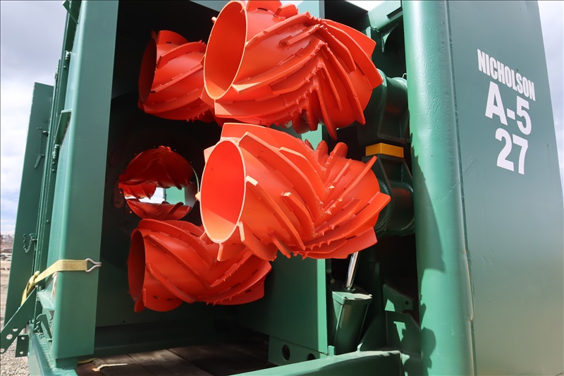 27" REFURBISHED RIGHT HAND DEBARKER, MAIN FRAME: SERVERAL FEED ROLL BEARINGS REPLACED, NEWS GEARS, NEW HOSES & LUBES LINES, RING CARRIER FRAME: WELD REPAIRED AND REMACHINED AREA THAT THE RING BOLTS TO THE CARRIER FRAME, AIR CELL RING, MAIN RING BEARINGS CHECK OUT TO AXIAL OF .005 - DEMETRIAL OF .008 - ALL NEW AIR BAGS WERE REPLACED - NEW TIMKIN CARTRIDGE BEARINGS AND SEALS REPLACED - OD OF THE RINGS WAS REMACHINED. INCLUDED: MAIN FRAME, CARRIER FRAME, ONE AIR CELL RING, RING DRIVE BELT, (2) FEEDWORKS MOTORS, ONE SET OF (6) TOOL ARMS AND CARBIDE TIPS. ANY PART THAT DIDN'T HAVE A 80% OR MORE SERVICE LIFE WAS REFURBISHED OR REPLACED. RING DRIVE MOTOR IS NOT INCLUDED.