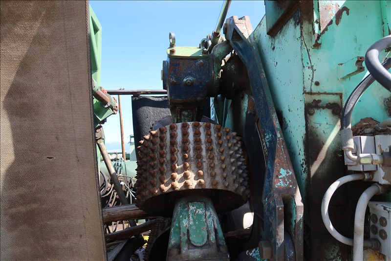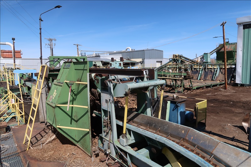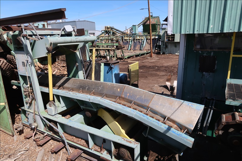 (CONVERTED TO 26" BY LINDSAY) 5-ARM RING DEBARKER W/AIR RING, 75 HP/1,200 RPM RING DRIVE MOTOR, HYDRAULIC DRIVEN, (3) INFEED & (3) OUTFEED SPIKE ROLLS, LINDSAY L7500 14' SELF-LEVELING INFEED LOG HAUL, (2) POWERED OUTFEED ROLLS, APPROX. 20' OUTFEED LOG HAU