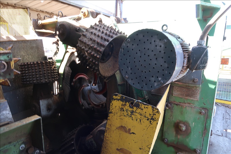(CONVERTED TO 26" BY LINDSAY) 5-ARM RING DEBARKER W/AIR RING, 75 HP/1,200 RPM RING DRIVE MOTOR, HYDRAULIC DRIVEN, (3) INFEED & (3) OUTFEED SPIKE ROLLS W/SKK 15 HP GEARHEAD MOTOR, APPROX. 18' SELF-LEVELING INFEED LOG HAUL, (2) OUTFEED ROLLS W/SM CYCLO GEAR