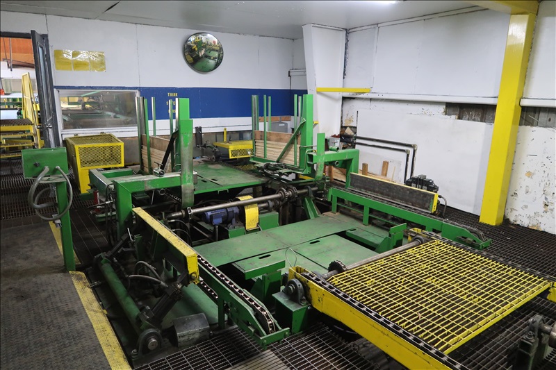 8' OVER END HYDRAULIC OPERATED STACKER W/(2) STICKER MAGAZINES, 2-STRAND IN & OUTFEEDS W/END TAMPERS, LUMBER STAMPING STATION (PLANER MILL)