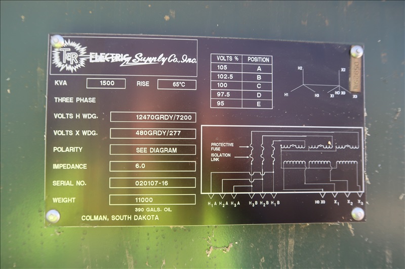 1,500 KVA PAD MOUNT TRANSFORMER, 12,470 GRDY/7,200 TO 480 GRDY/277V