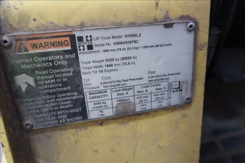 14,650 LB. CAPACITY FORKLIFT, PERKINS DIESEL ENGINE, MONOTROL, 212" 2-STAGE MAST W/SIDE SHIFT, 12"X48" FORKS, DUAL SOLID TIRES, HEATED CAB