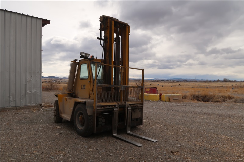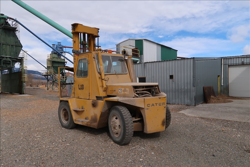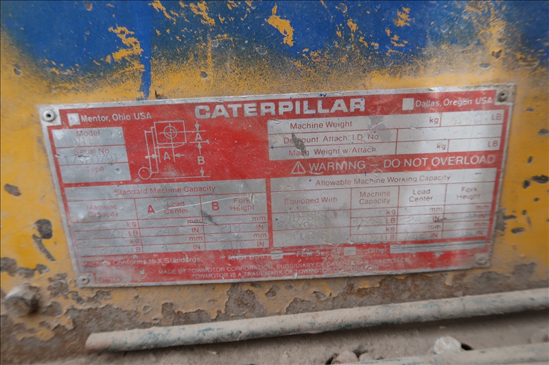 18,000 LB. CAPACITY FORKLIFT, CAT DIESEL ENGINE, 218" STAGE MAST W/SIDE SHIFT, 42" FORKS, DUAL PNEUMATIC TIRES