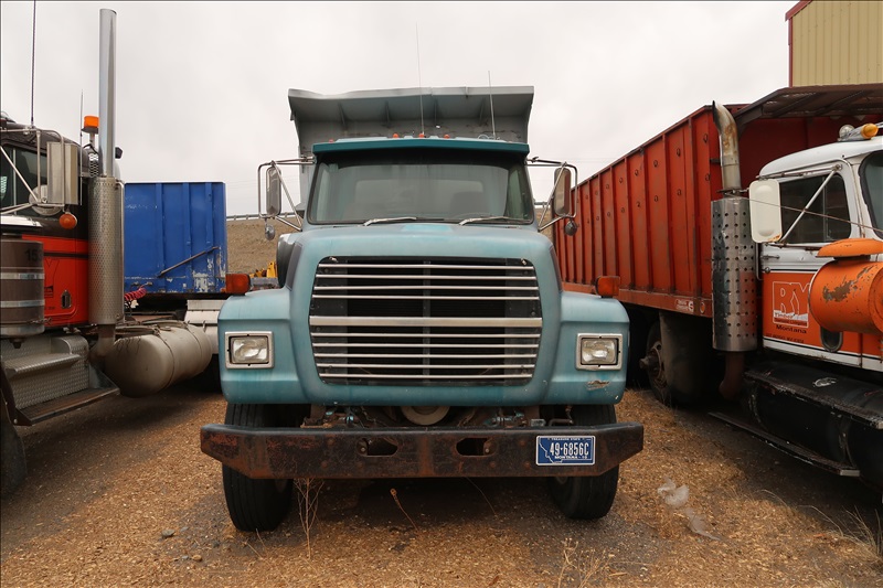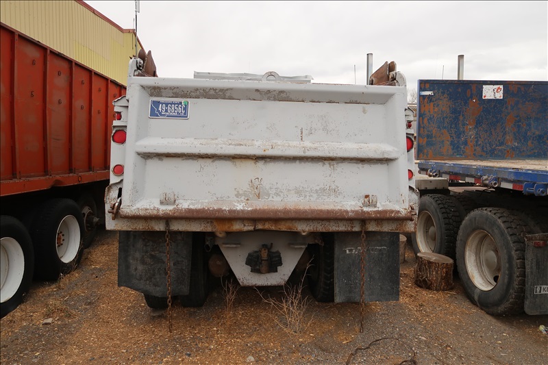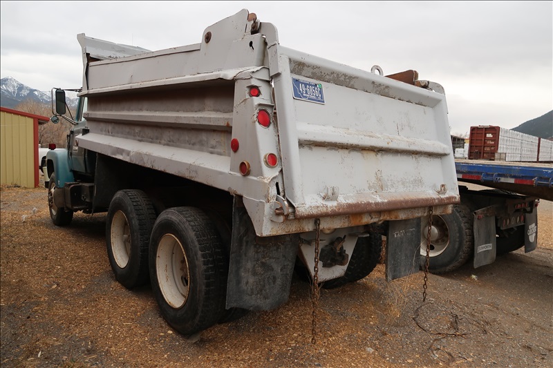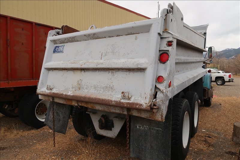 TANDEM AXLE DUMP TRUCK W/CUMMINS DIESEL ENGINE, FORD MT650 TRANSMISSION, DUMP BOX & PTO, 11R24.5 TIRES W/10-HOLE RIMS (RECORDS AVAILABLE)(LOCATED IN LIVINGSTON, MT)