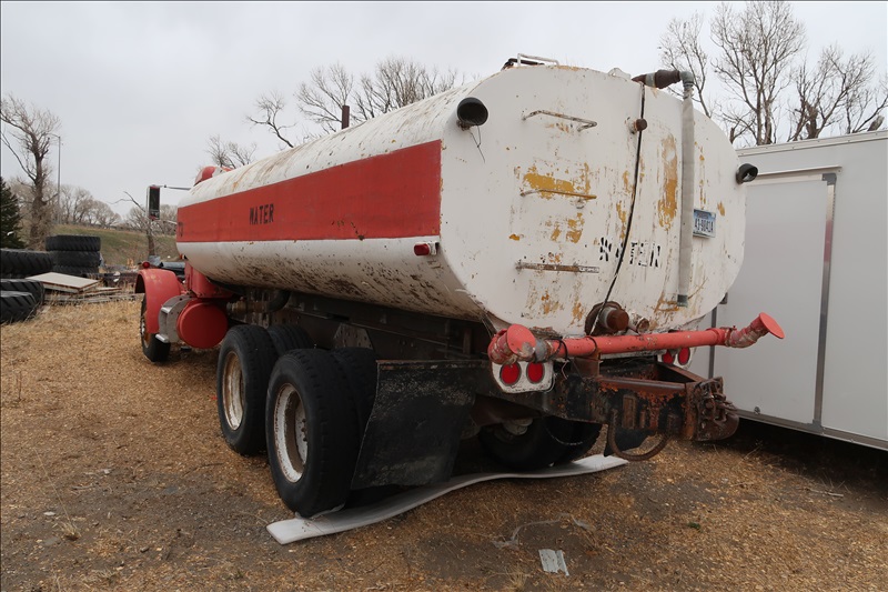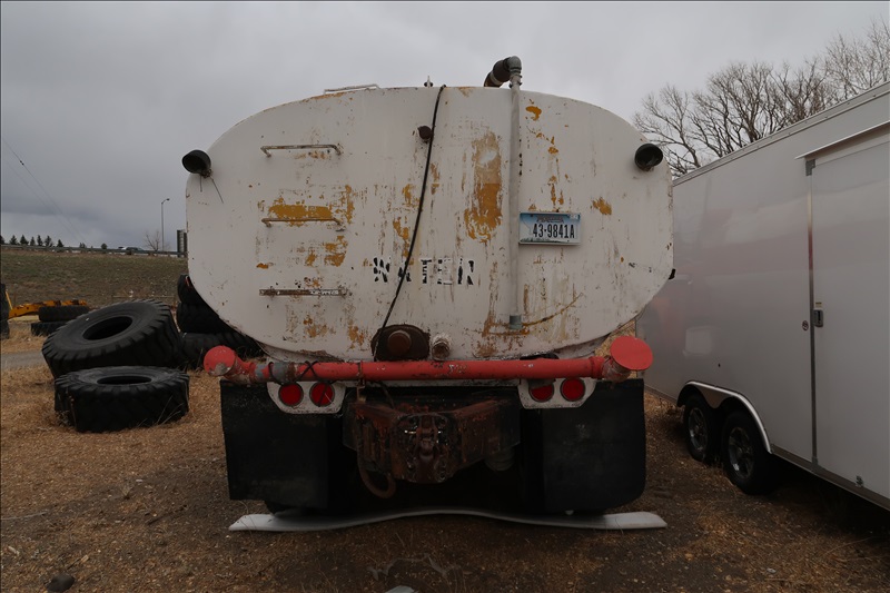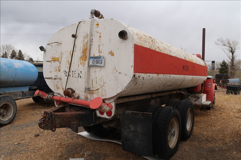 TANDEM AXLE WATER TRUCK W/CUMMINS 250 DIESEL ENGINE, MANUAL TRANSMISSION, PTO, APPROX. 2,000 GALLON WATER TANK W/FRONT, BACK & SIDE PIPES (RECORDS AVAILABLE)(LOCATED IN LIVINGSTON, MT)