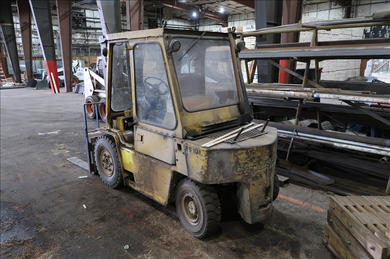 APPROX. 8,000 LB. CAPACITY FORKLIFT, PERKINS DIESEL ENGINE, APPROX. 120" 3-STAGE MAST W/SIDE SHIFT, 48" FORKS, PNEUMATIC TIRES, ENCLOSED CAB (RECORDS AVAILABLE)(LOCATED IN LIVINGSTON, MT)
