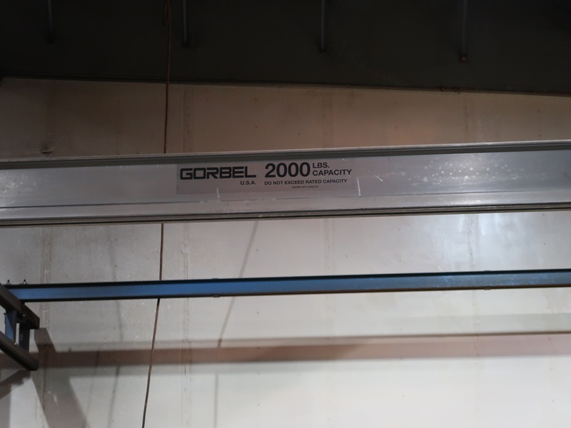 2,000 lb cap. self supporting overhead hoist system w/bridge supports & uprights w/2001 ANUER VPI vacuum lift