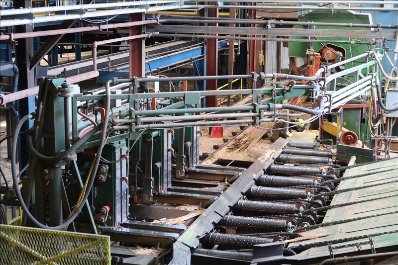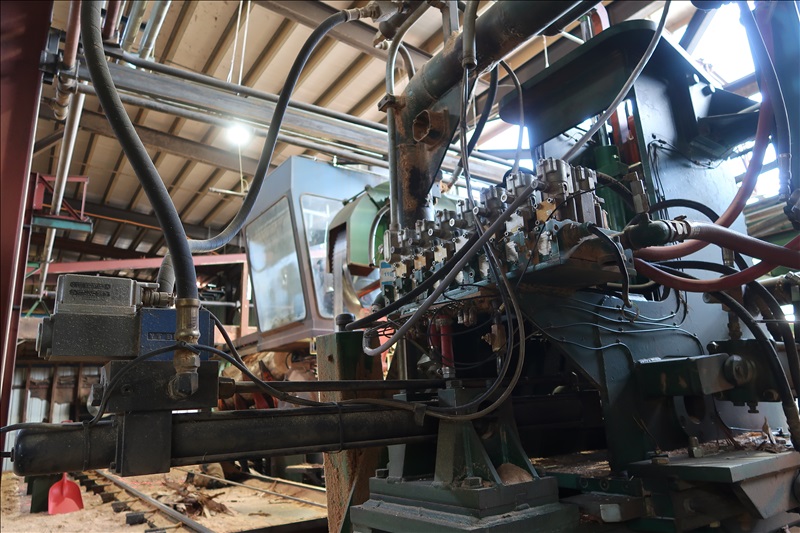 APPROX 32" X 16' 3-KNEE RH TEMPOSONIC POSITIONED CARRIAGE, TOP & BOTTOM HAMMER DOGS, BROWNSVILLE LOG TURNER, FLIPPERS, (4) TRUCKS, PANTOGRAPH, RAIL & BUMPERS, SOUNDPROOF CAB & CONTROLS, SUPPORT EQUIPMENT