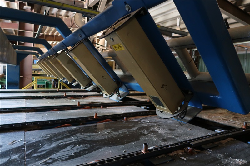 OPTIMIZED GANG EDGER, S/N:2840 W/(2) 350 HP/2,050 RPM ARBOR DRIVE MOTORS, RETEK #3 SPLINED ARBOR, 23-1/2" SAWS, CHROMED KNURLED FEED ROLLS, PRESS ROLLS, SPARE SAWS & GUIDES, LUBE SYSTEM, 2016 TMT FEED MODULE, TMT TEMPOSONIC POSITIONED CHIPPING HEADS W/KEY KNIFE CONVERSION, 20" FACE, (2) 150 HP/1,180 RPM MOTORS, 2016 TMT FEED MODULE, S/N:5394, JOE SCAN 20' TRANSVERSE SCANNING SYSTEM W/(16) JOE SCAN JS25WX SCAN HEADS, SCAN TRANSFER SYSTEM TO TEMPOSONIC POSITIONED INFEED TRANSFER/ROLLCASE, OUTFEED BELT TRANSFERS, BENSHAW & ALLEN BRADLEY STARTS ON ARBOR DRIVES & CHIPPING HEADS, ALLEN BRADLEY VFD'S & PLC, SICAM SYSTEM, SUPPORT INFEEDS & OUTFEEDS, CONTROLS, ELECTRICS & HYDRAULICS