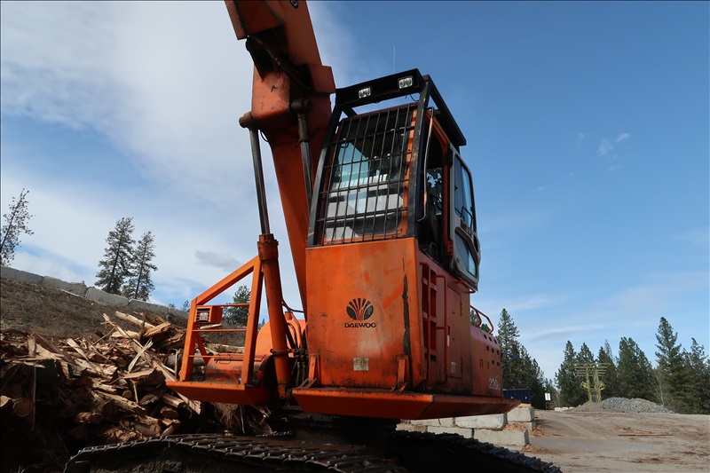 TRACK MOUNTED LOG LOADER, S/N: 1052-4HEEMRO, DOOSAN DIESEL ENGINE, S/N: 47910, JEWELL SL3612 BOOM/SWIVEL GRAPPLE MODEL 4051SLBR, 27-1/2" 2-STAGE TRACKS