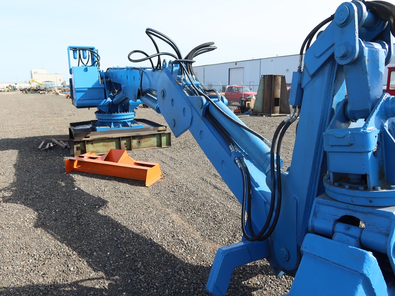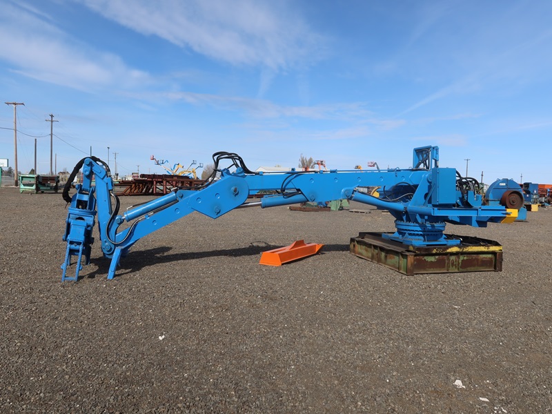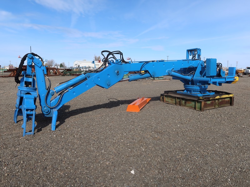 PEDISTAL MOUNTED HEEL BOOM LOG LOADER W/ROTARY GRAPPLE, 15' BOOM, 9' STICK, 75HP HYDRAULIC PUMP W/FLUIDYNE VALVES - COMPLETE REFURBISH IN 2022 (LOCATED AT 13752 N FRONTAGE RD E, MOSES LAKE, WA 98837)
