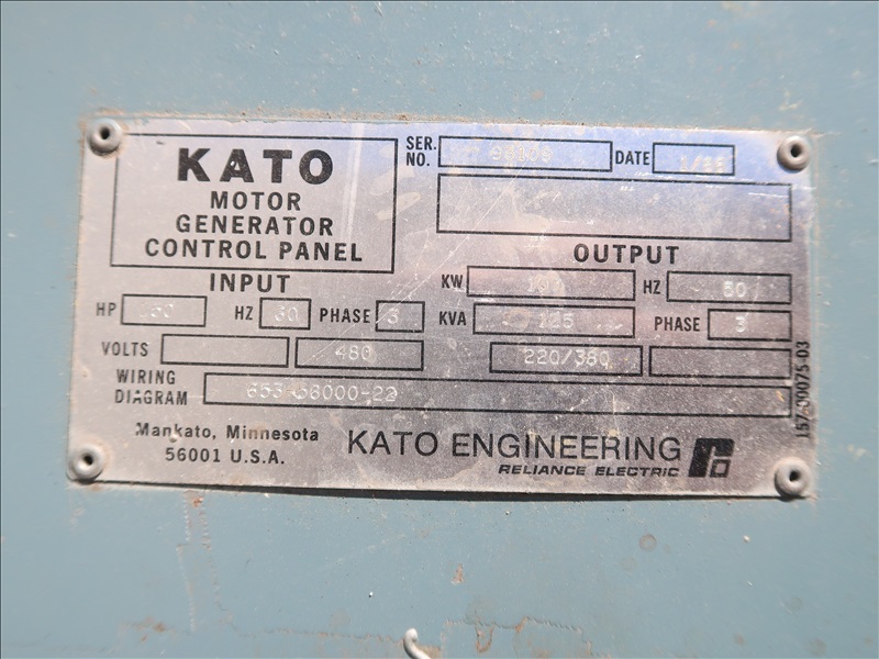 BRUSHLESS SYNCHRONOUS MG SET, 100 KW/100 125 KVA, 220/380V, 3 PHASE ALT, 150 HP, 480V MOTOR & MOTOR GENERATOR CONTROL PANEL