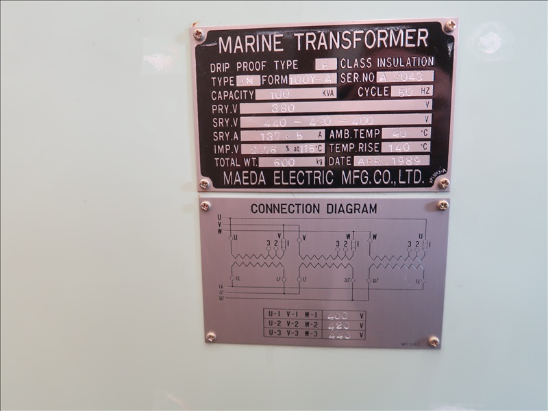 100 KVA MARINE TRANSFORMER, PRIMARY 380V, SECONDARY 480-420-400V