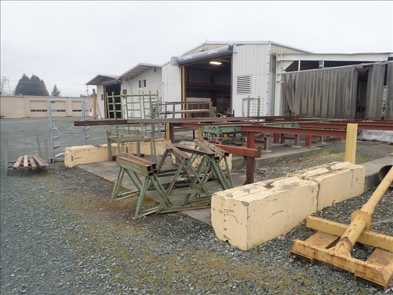 GROUP OF MISC. STEEL, SAW HORSES, FORKLIFT BOOM, PIPE & MISC.