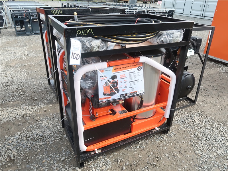 DIESEL FIRED HOT WATER PRESSURE WASHER W/KOHLER COMMAND PRO 14 HP GAS ENGINE, HOSE, WAND & CASTERS, 4,000 PSI (UNUSED)